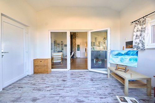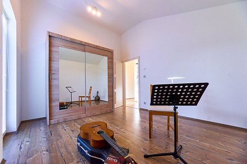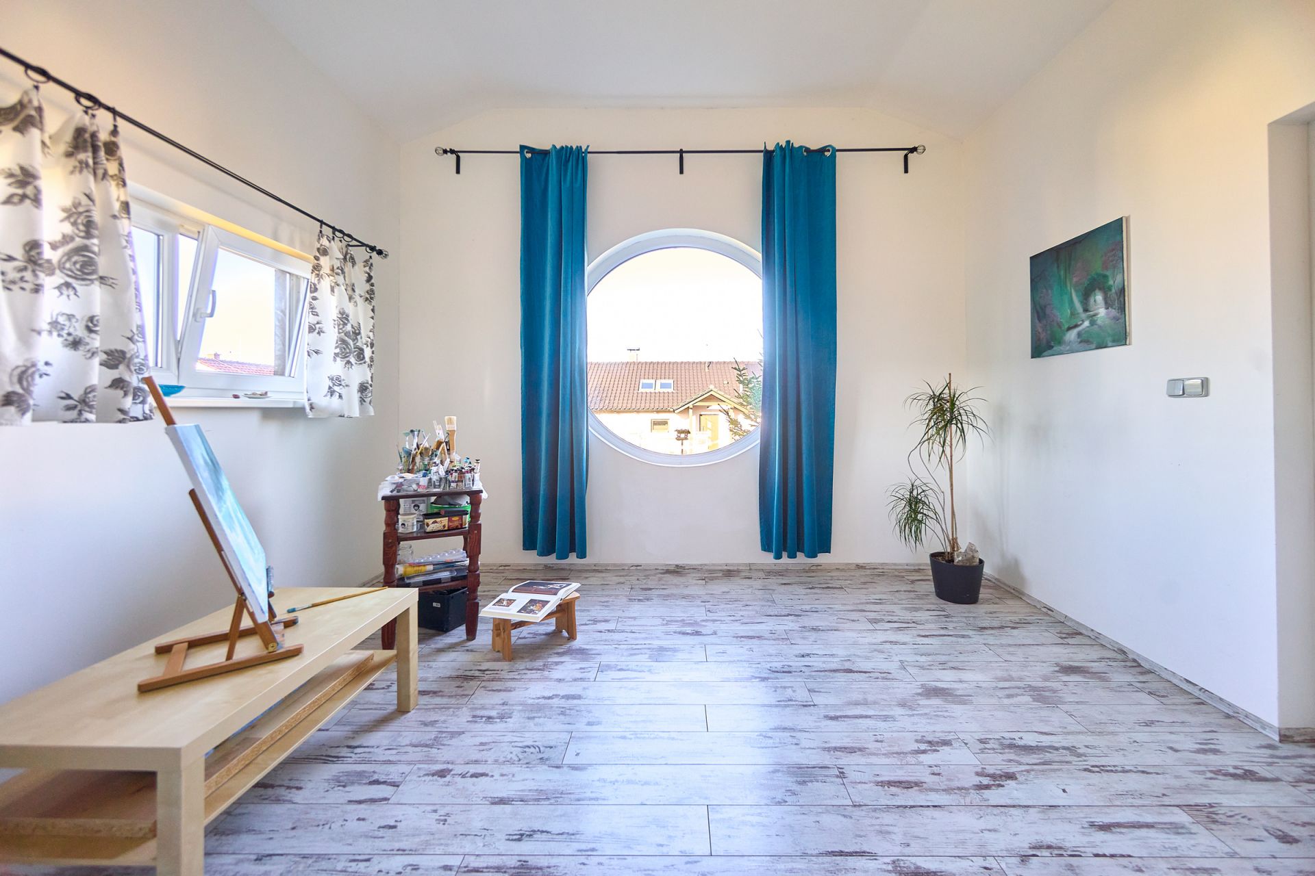 i velmi hezký a světlý pokoj s velkým kulatým oknem, který může posloužit jako pracovna či ateliér.